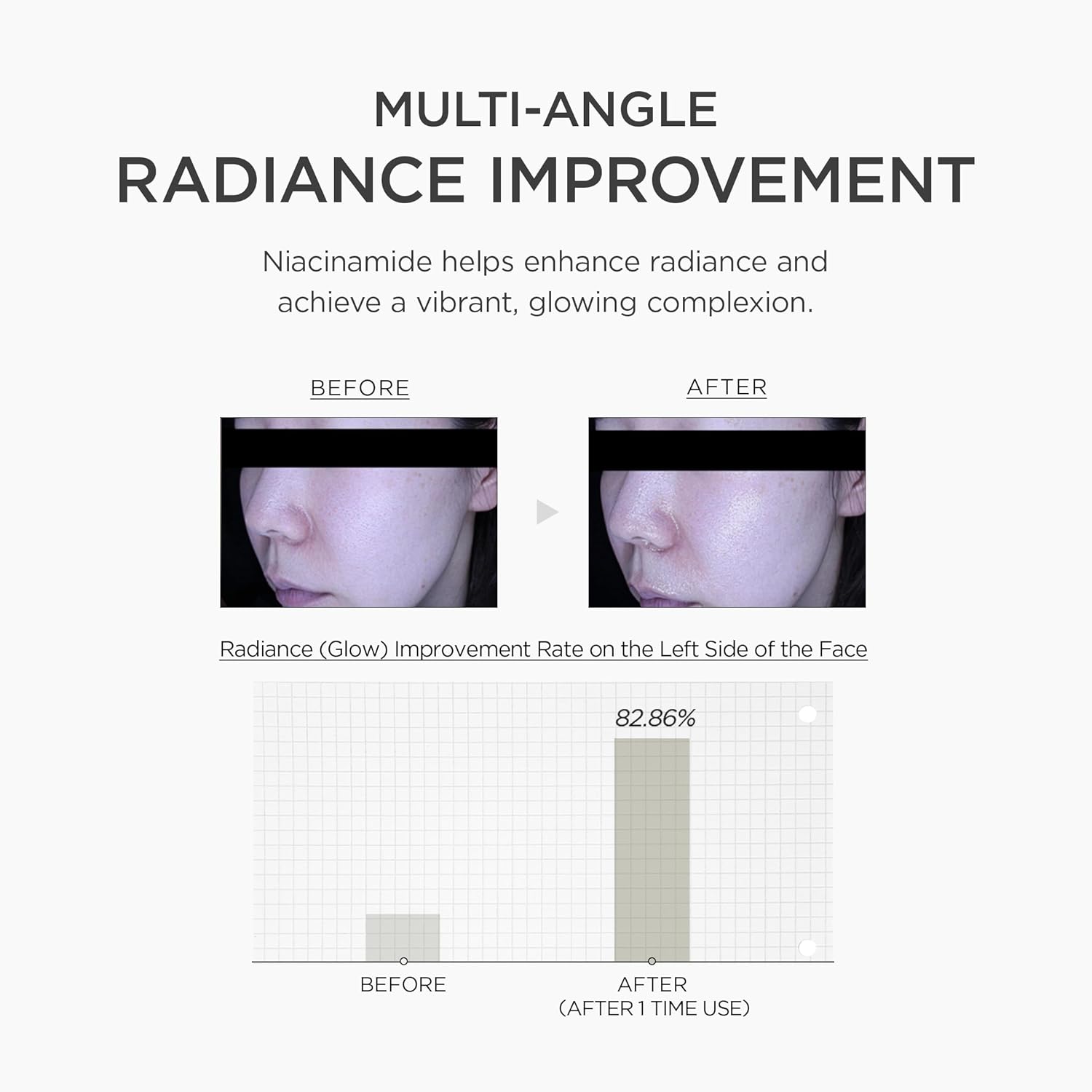 - روشنکنندگی: افزایش درخشندگی پوست پس از یک بار استفاده؛ تصحیح سهگانه tone (روشنایی، یکنواختی، کاهش زردی) پس از ۲ هفته.