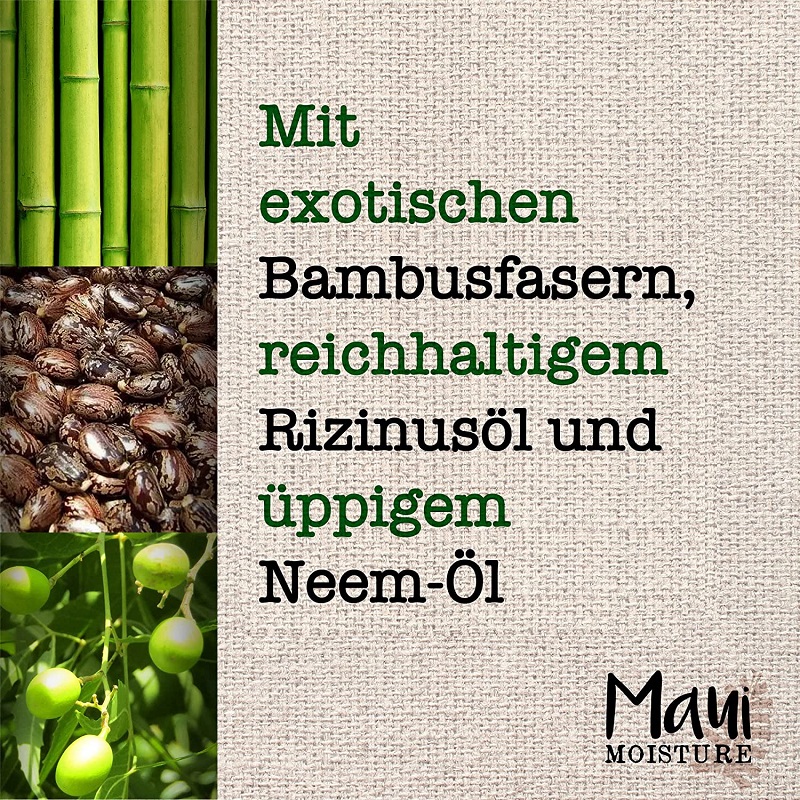 اسپری ضخیم کننده و بازسازی کننده موی بامبو مائوئی Maui Bamboo Fibers دارای فرمول باکیفیت حاوی فیبر بامبو جهت افزایش ضخامت و تراکم موهای نازک، ضعیف و شکننده می باشد. اسپری مائویی ایده ال برای ایجاد موهایی پرپشت، خوش حالت، انعطاف پذیر و مستحکم است و دارای فرمول بدون نیاز به آبکشی است. اسپری ضخیم کننده و بازسازی کننده موی بامبو همچنین حاوی روغن کرچک جهت تغذیه، نرمی و افزایش استحکام مو و روغن دانه چریش (Neem) جهت ترمیم و بازسازی ساختار موهای نازک و آسیب دیده است. این فرمول احیاکننده سرزندگی موها است که به همراه آب آلوئه ورا و آب نارگیل به عنوان پایه اولیه ساخت ترکیب اسپری مائوی تامین کننده تمام نیاز تارهای مو برای شادابی و طراوت آن می باشد. اسپری بامبو مائوئی مویسچر فاقد سولفات، سیلیکون و پارابن است و فرمول کاملا گیاهی و وگن دارد.