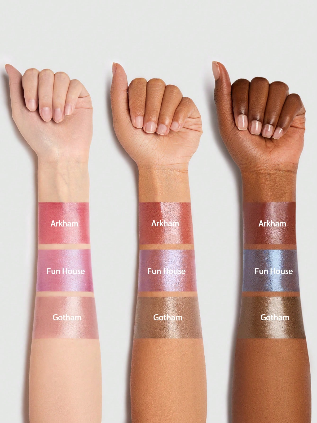 - رنگ پایه Arkham با درخشش مرواریدی (pearlescent shimmer) شروع میشود و به تدریج به یک رنگ عمیق، مرموز و جذاب تبدیل میشود که با حال و هوای تاریک و دیوانهوار محیط آرکهام در دنیای هارلی کویین همخوانی دارد.