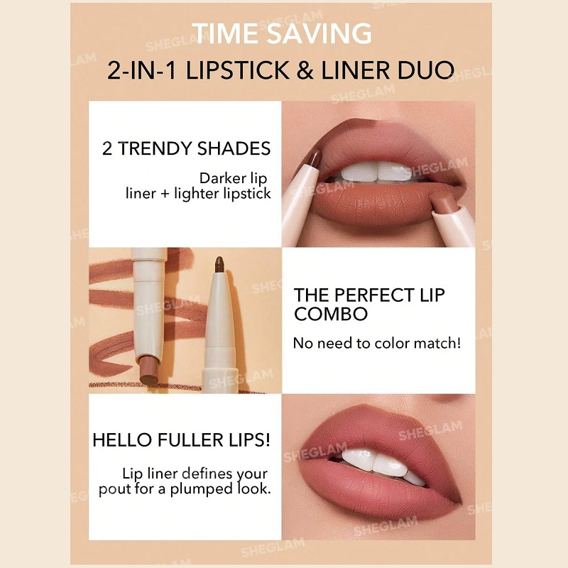 یک طرف این محصول فوق العاده یک رژ لب مات استیکی همراه با پیگمنت رنگدانه زیاد و طرف دیگر آن یک خط لب پیچی با کیفیت است که به راحتی می توانید از آن برای آرایش لب های خود استفاده نمایید.