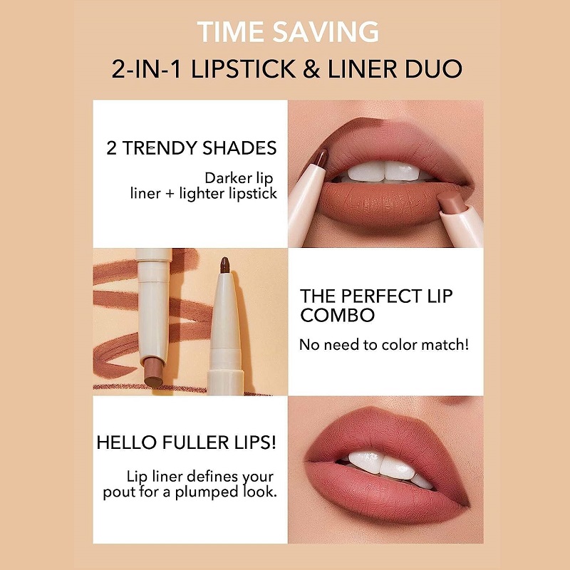 یک طرف این محصول فوق العاده یک رژ لب مات استیکی همراه با پیگمنت رنگدانه زیاد و طرف دیگر آن یک خط لب پیچی با کیفیت است که به راحتی می توانید از آن برای آرایش لب های خود استفاده نمایید.