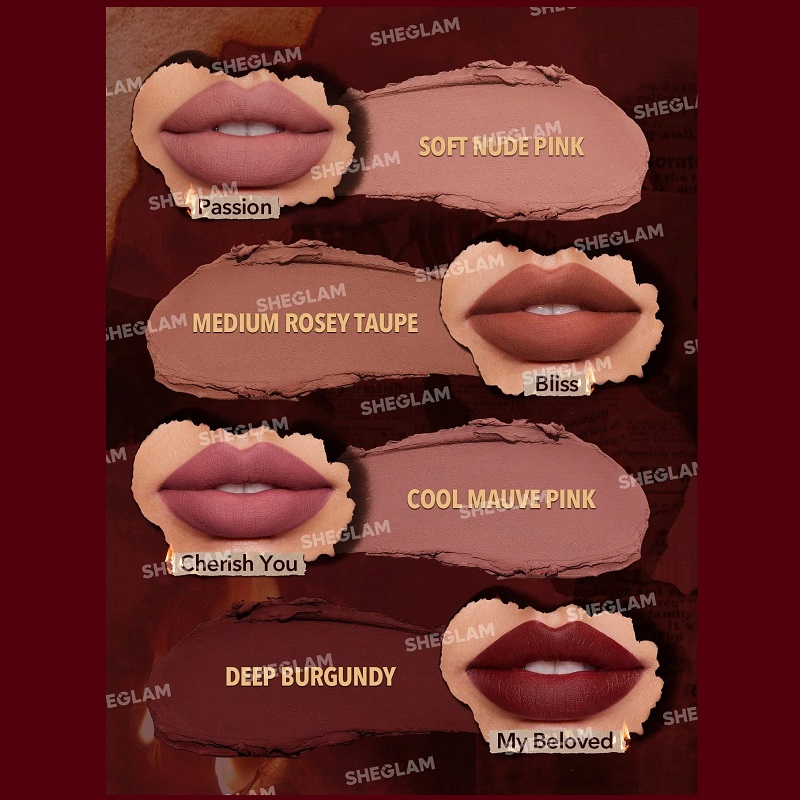 sheglam Dynamatte Boom Long-Lasting Matte Lipstick (Ember Rose Set)