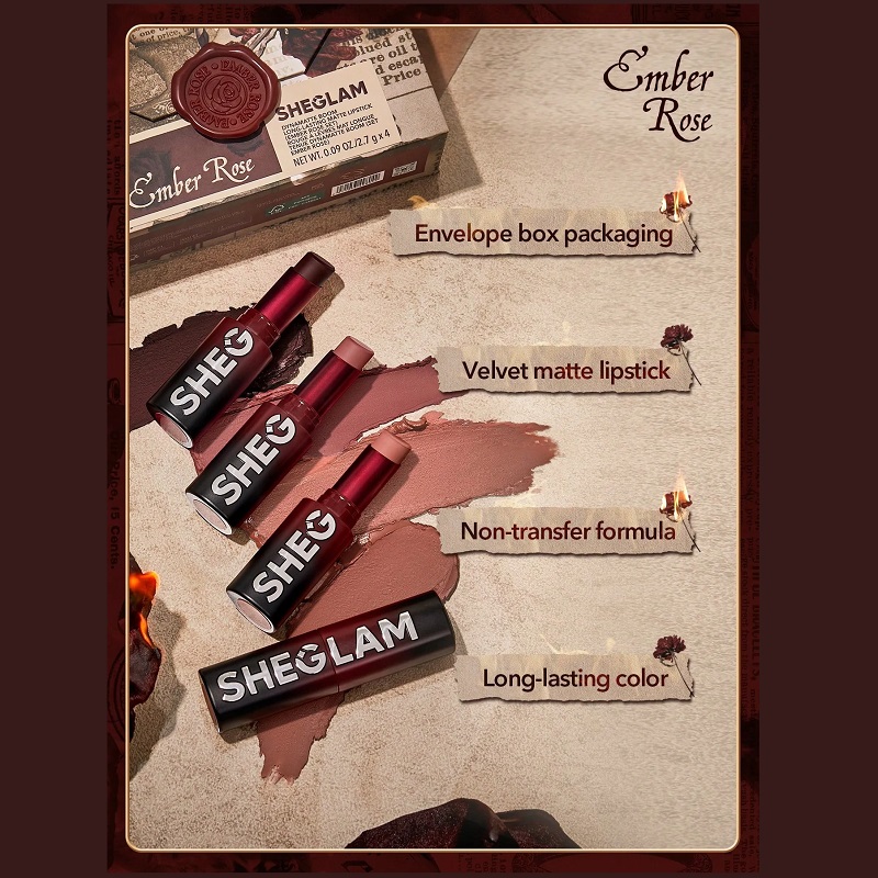 ست رژلب جامد 4 عددی شیگلم سری Ember Rose فرمولی وگان داشته و بر روی حیوانات تست نشده است.