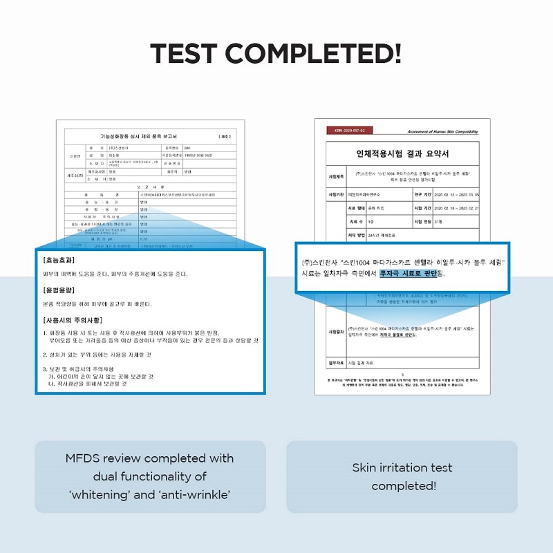 در فرمولاسیون سرم آبرسان سنتلا هیالو سیکا بلو Skin 1004 از عصاره طبیعی سنتلا، اسید هیالورونیک، سرامید NP، نیاسینامید، آدنوزین و عصارههای طبیعی مغذی استفاده شده که پوست را عمیقا آبرسانی کرده و همچنین موجب تسکین و آرامش بخشی پوست می شود.
