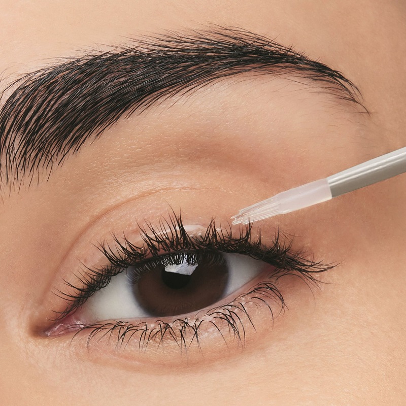 - مژه ها: تقویت کننده مژه را در امتداد قاعده خط مژه، از گوشه داخلی به بیرون بزنید و روی مژه ها برس بزنید.