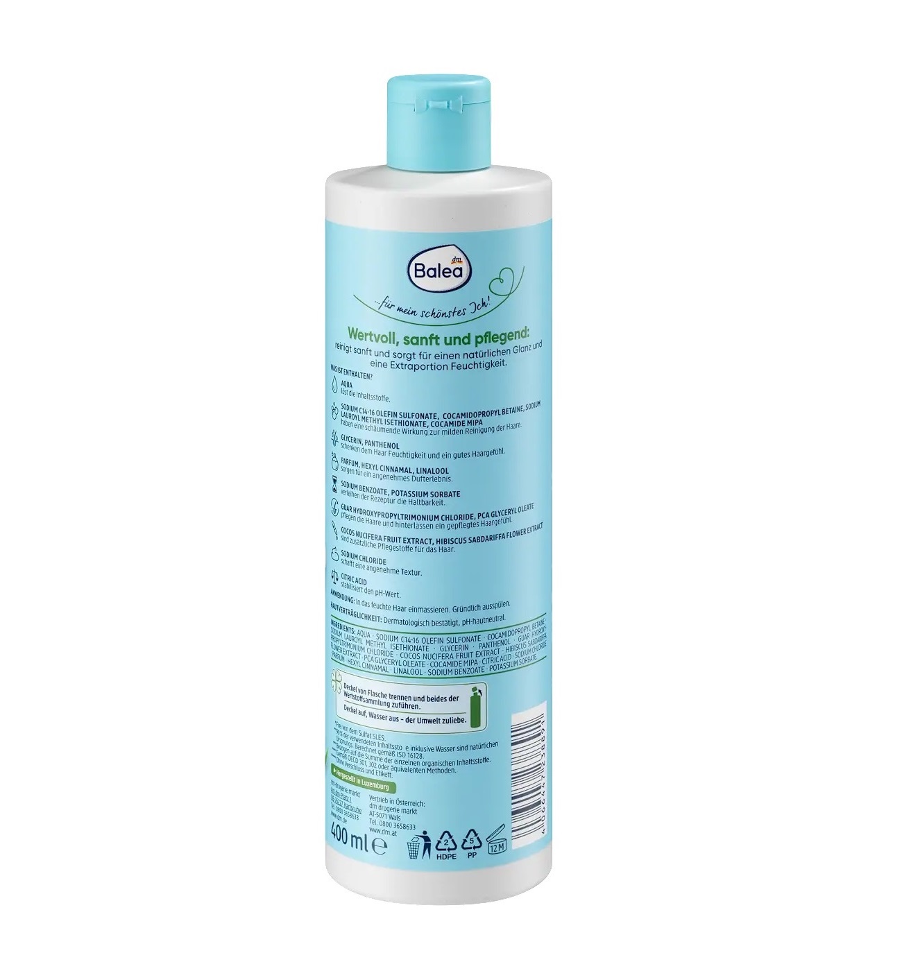 Balea Natural Beauty Shampoo Hibiscus Extract and Coconut Milk, 400 ml
