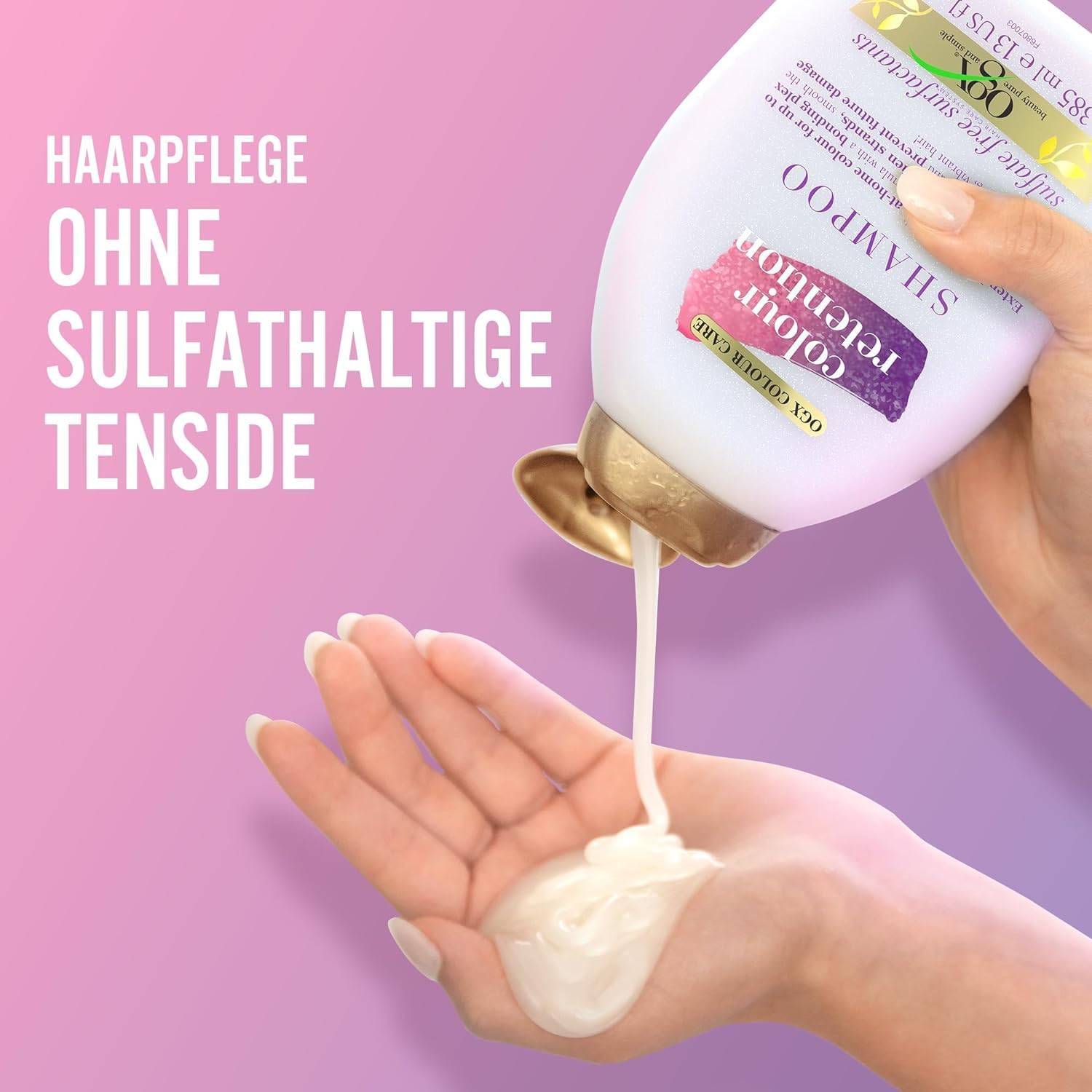 - برای بهترین نتیجه، پس از شامپو از نرمکننده OGX Colour Retention استفاده کنید.
