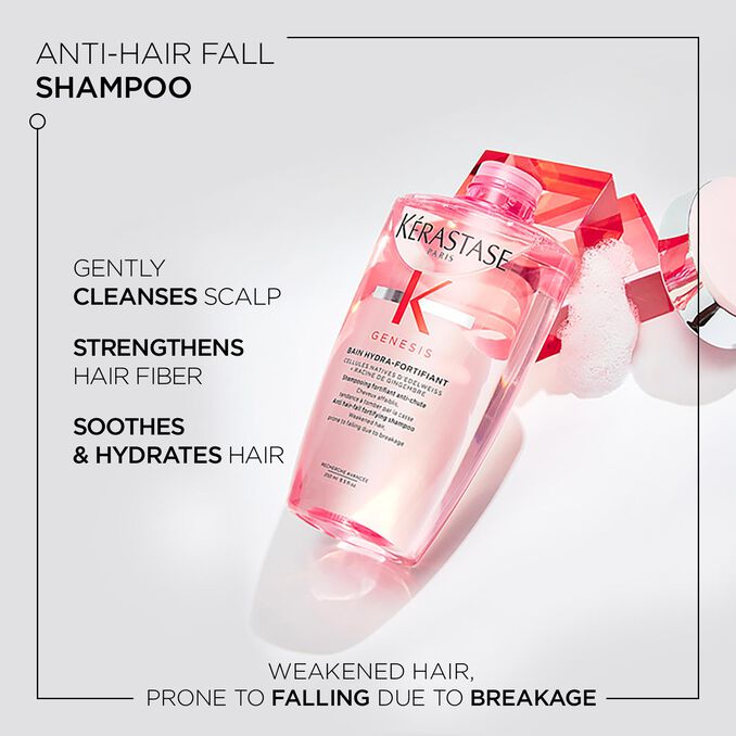 شامپو Kérastase Bain Hydra-Fortifiant از مجموعه Genesis برند Kérastase، یک شامپو تقویتکننده و ضد ریزش مو است که بهطور خاص برای موهای نازک، نرمال تا چرب و ضعیف شده که مستعد ریزش به دلیل شکنندگی هستند، طراحی شده است. این محصول با فرمولاسیونی ملایم و بدون سیلیکون، به پاکسازی عمیق پوست سر و موها از سبوم (چربی طبیعی) و ذرات آلودگی کمک میکند و در عین حال فیبر مو را تقویت میکند تا از ریزش مو ناشی از شکنندگی جلوگیری کند.