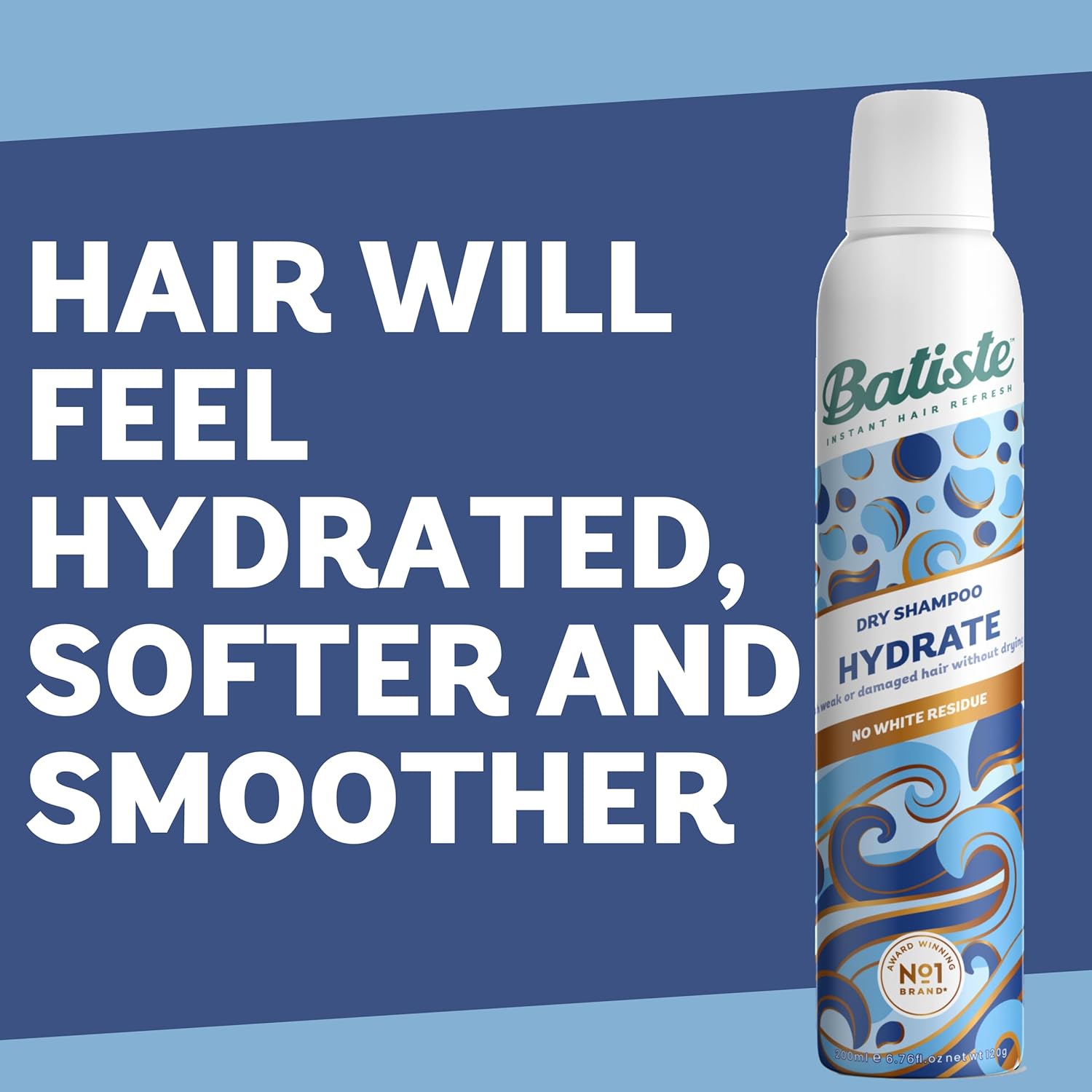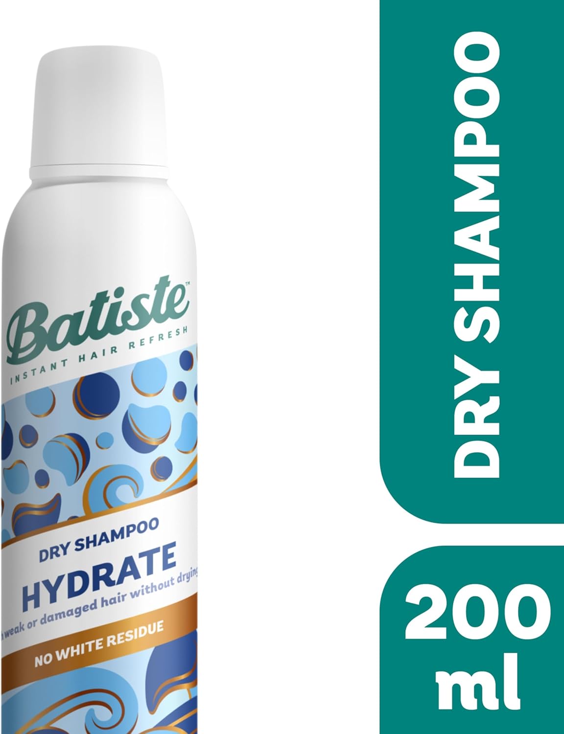 شامپو خشک آبرسان مو باتیست مدل Hydrate یکی از محصولات محبوب برند باتیست (برند انگلیسی با بیش از ۴۰ سال تجربه در شامپوهای خشک) است که مخصوص موهای خشک، معمولی یا آسیبدیده طراحی شده است. این محصول برخلاف شامپوهای خشک معمولی، نه تنها چربی اضافی را جذب میکند، بلکه رطوبت و نرمی به موها اضافه میکند و از خشک شدن بیشتر جلوگیری میکند.
