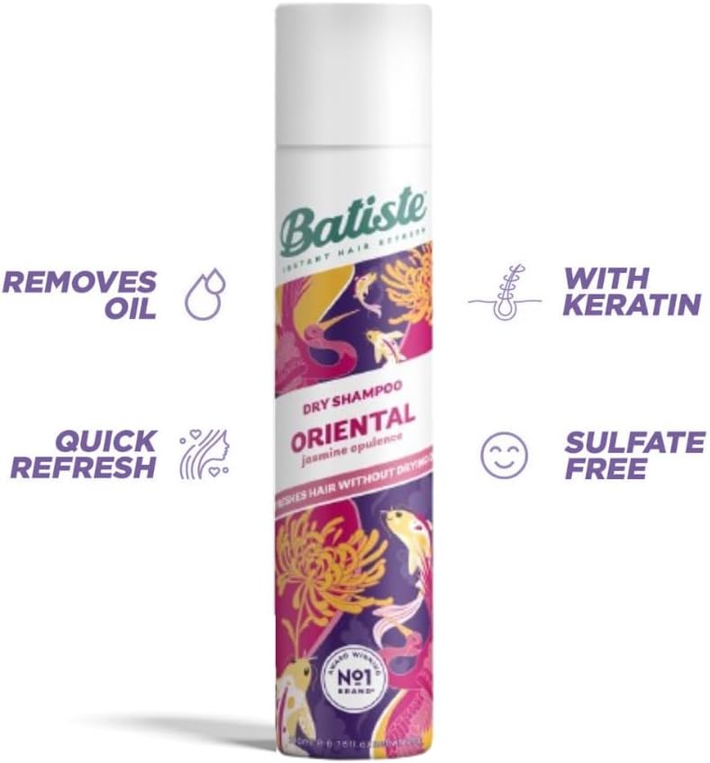 شامپو خشک باتیست مدل Oriental یک شامپو خشک محبوب از برند باتیست (پرفروشترین برند شامپو خشک در انگلیس) است که برای تازه کردن سریع موها بین شستشوهای معمولی طراحی شده. این محصول بدون نیاز به آب، چربی اضافی پوست سر و ریشه مو را جذب میکند، حجم و بافت طبیعی به موها میدهد و آنها را خوشبو و شاداب میسازد.