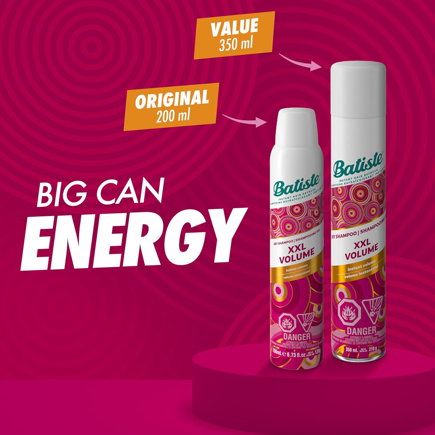 شامپو خشک حجم دهنده مو باتیست مدل XXL Stylist Volume یک شامپو خشک محبوب از برند باتیست (پرفروشترین برند شامپو خشک در انگلیس) است که به طور خاص برای افزایش حجم فوقالعاده (XXL Volume) طراحی شده است. این محصول نه تنها موها را بین شستشوها تازه و تمیز میکند، بلکه حجم و بافت زیادی به موها میدهد و مانند یک "اسپری حجمدهنده فوری" عمل میکند.