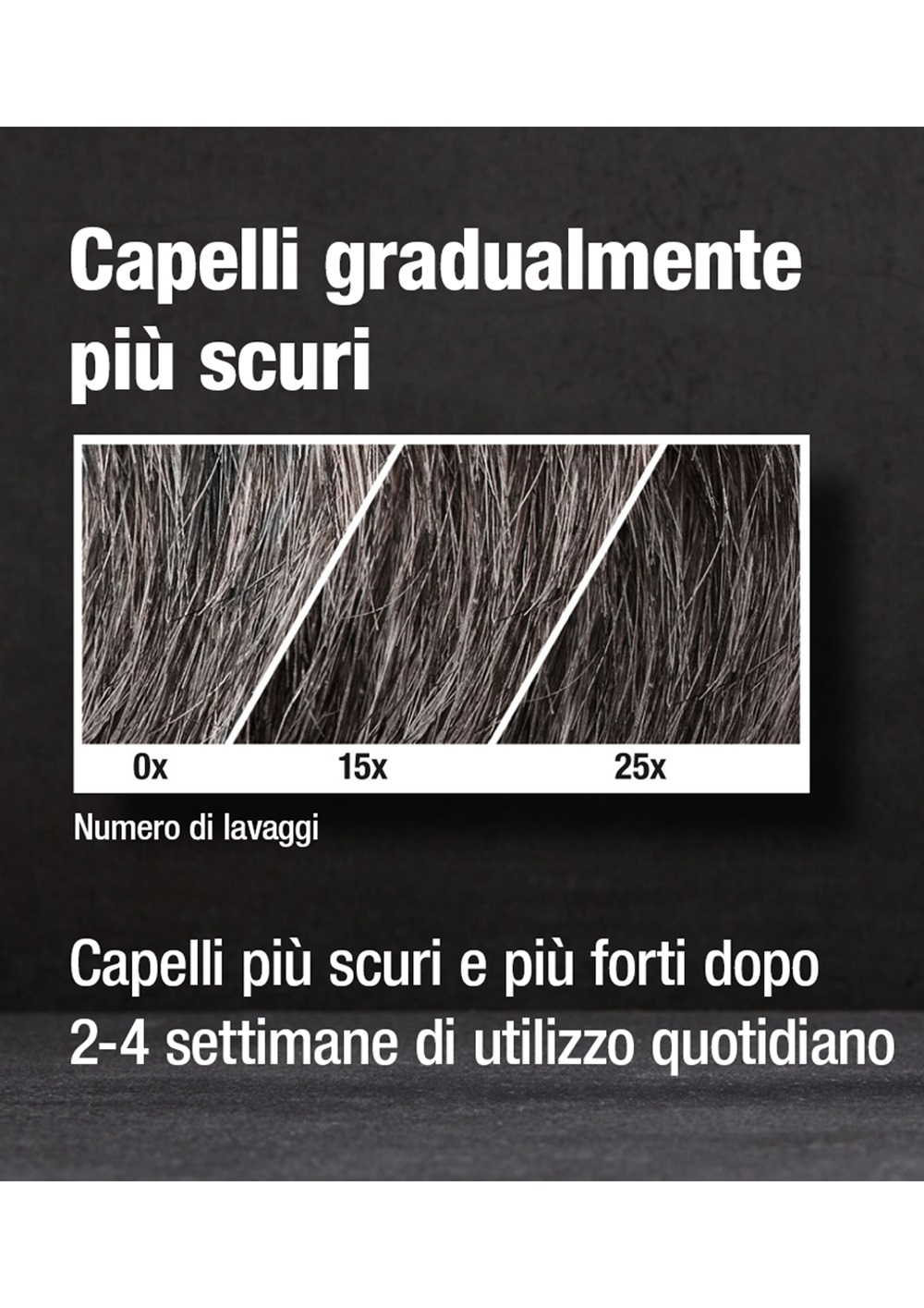- کاهش تدریجی موهای خاکستری: فرمولاسیون پیشرفته این شامپو شامل یک ماده فعال به نام 5,6-DHI است که در طول شستشو در موها تجمع مییابد. این ماده با اکسیژن هوا واکنش نشان داده و رنگدانههایی را در داخل مو تشکیل میدهد. این فرآیند باعث میشود که موها به تدریج تیرهتر شده و رنگدانهها به طور دائم در مو باقی بمانند. این روش به جای رنگ کردن یکباره مو، به تدریج موها را به رنگ طبیعی خود باز میگرداند و ظاهری طبیعی و بدون تغییر ناگهانی ایجاد میکند.