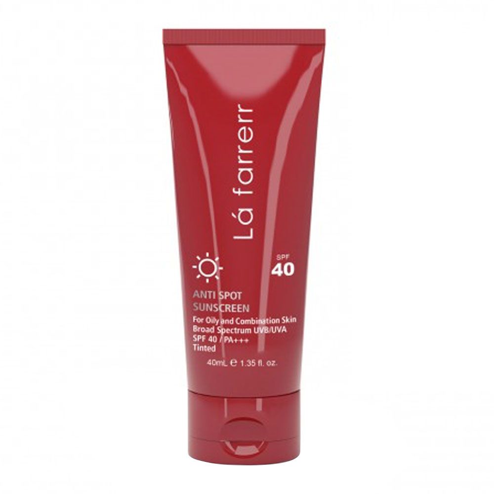 کرم ضد آفتاب و ضد لک رنگی مخصوص پوستهای چرب و مستعد آکنه رنگ SPF40+ لافارر، در سه رنگ، روشن، متوسط و تیره طراحی شده است. این محصول حاوی عصاره گیاهان شیرین بیان، بیربری، سارمنتوزا ساکسی فراگا، پاپایا و گواوا است که در کاهش تولید رنگدانه ملانین موثر بوده و علاوه بر ممانعت از بروز لک، به کاهش لکهای پوستی نیز کمک میکند.