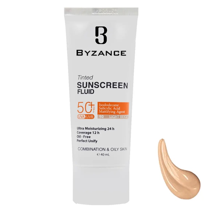 فلوئید ضد آفتاب رنگی SPF50 پوست چرب و مختلط بیزانس رنگ بژ روشن شماره 10