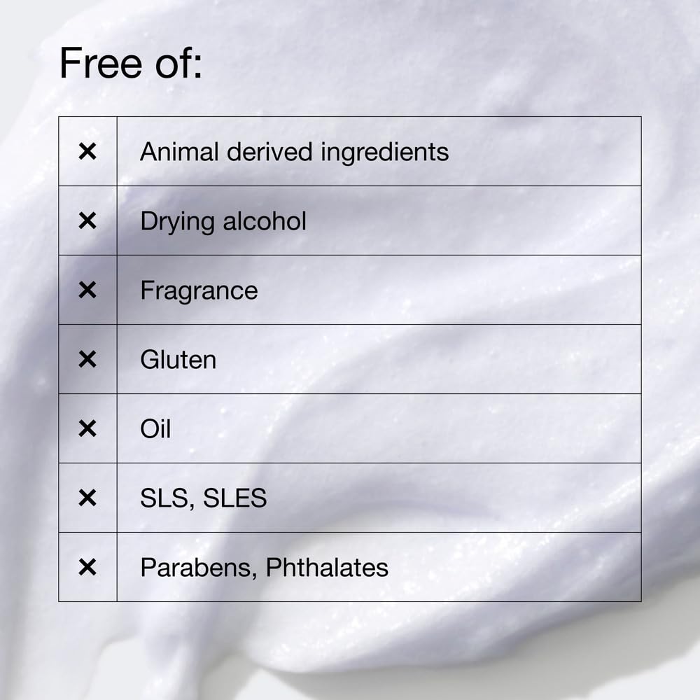 - ویژگیهای فرمولاسیون: بدون روغن، بدون عطر، بدون پارابن، بدون فتالات، بدون سولفات (SLS/SLES)، بدون الکل خشککننده و بدون مواد مشتقشده از حیوانات است. همچنین این محصول توسط متخصصین پوست تست شده و برای پوستهای حساس نیز مناسب است.
