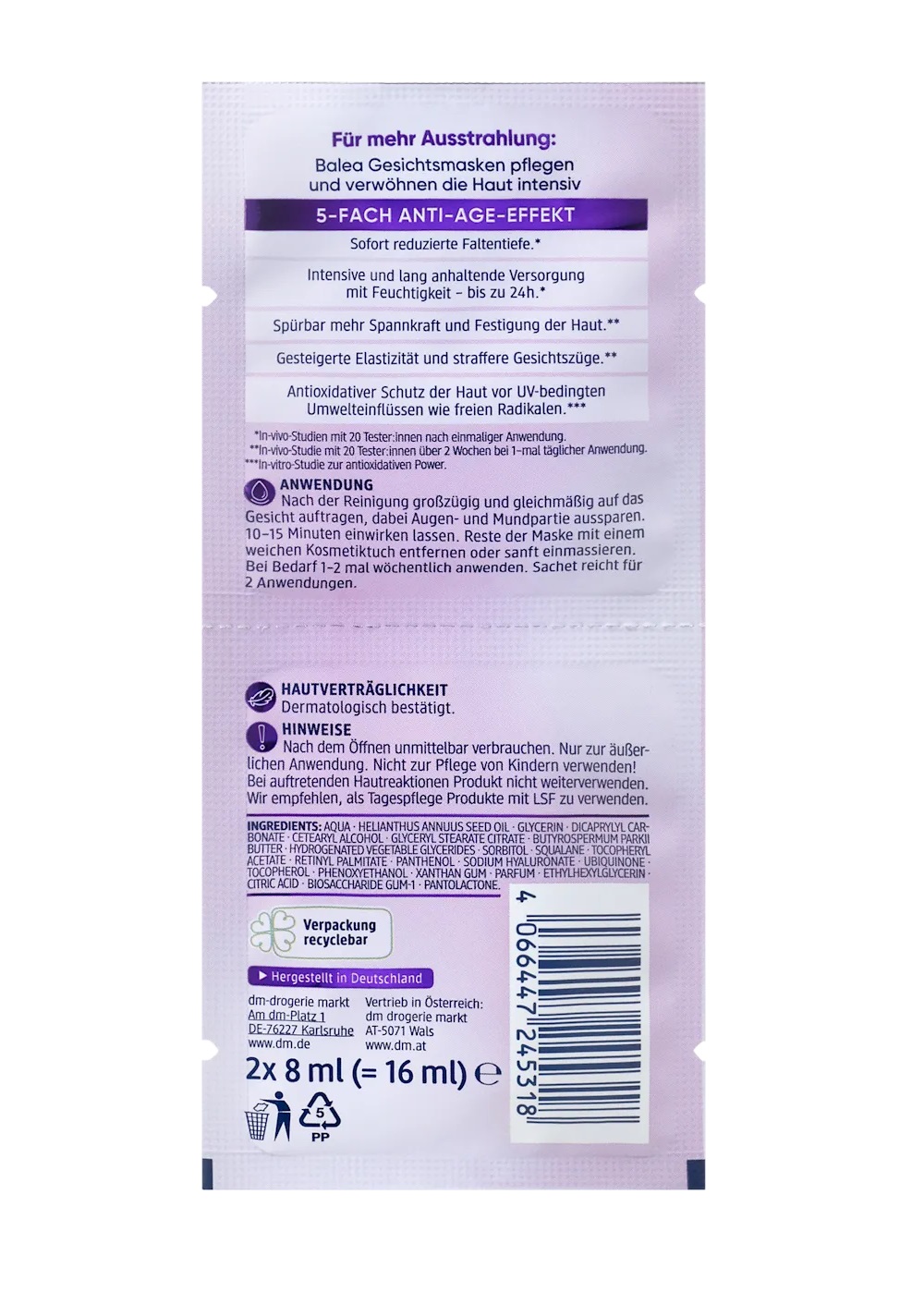 Balea Retinol Face Mask (2x8 ml), 16 ml
