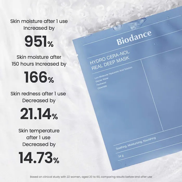 ماسک ورقی صورت بایودنس مدل هیدرا سرانول یک ماسک هیدروژلی است که از جامد شدن سرم بسیار غنی و غلیظ تهیه شده است. استفاده از این ماسک حس تسکین و التیام را در پوست ایجاد نموده و موجب تقویت و تغذیه سد دفاعی پوست میشود. همچنین حاوی 50000PPM GLACIAL WATER است که همان یخچالهای طبیعی ذوب شده در قطب بوده و سرشار از مواد معدنی مناسب پوست میباشد همچنین جذب ترکیبات فعال در پوست را افزایش میدهد و یک لایه مرطوب روی پوست ایجاد میکند. این ماسک دارای قدرت آبرسانی بالا بوده و فاقد ترکیبات حساسیت زا است و باعث ایجاد حساسیت نخواهد شد و روی پوست حساس قابل استفاده است. بعد از 3 ساعت استفاده از ماسک، شاهد جذب شدن ترکیبات ماسک خواهید بود.
