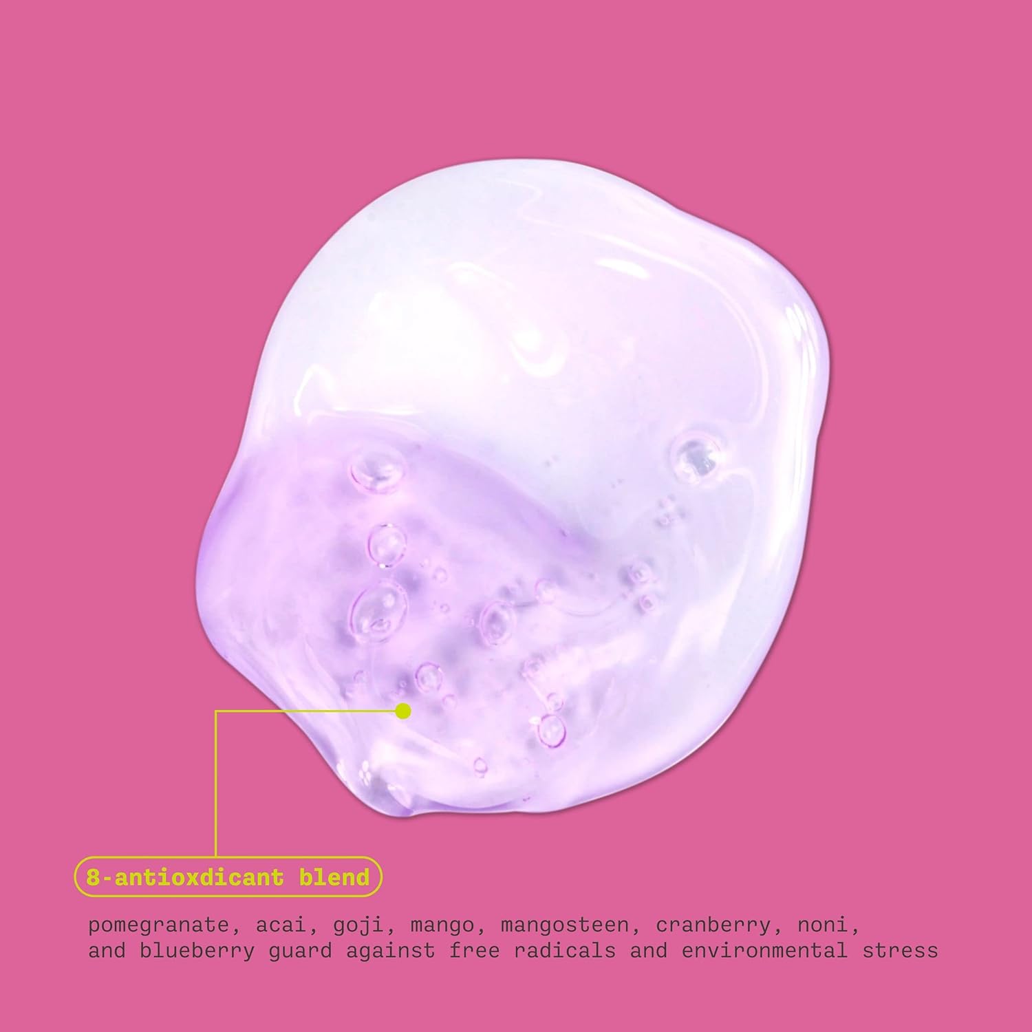 - حاوی Mega 8 Complex، ترکیبی از عصارههای میوهای غنی از آنتیاکسیدان مانند انار، آکای، گوجی، انبه، منگوستین، کرنبری، نونی و بلوبری.