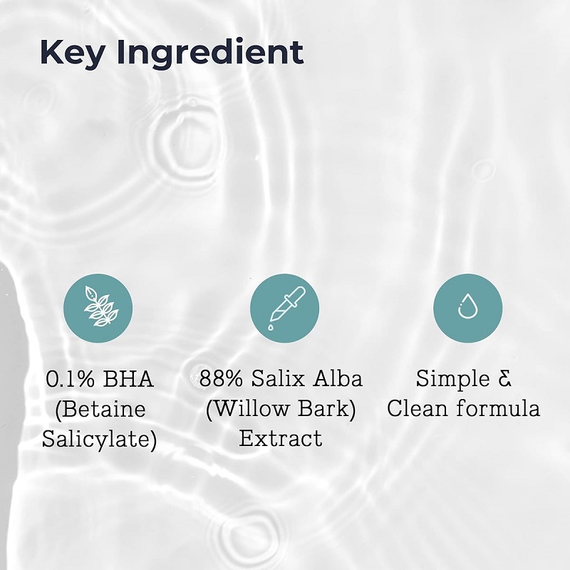 - ۸۸% آب پوست درخت بید سفید: بهبود دهنده بافت پوست همراه با BHA طبیعی.