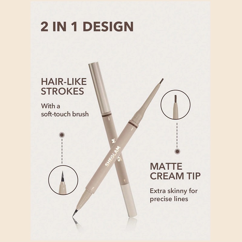 یک طرف این محصول یک مداد پیچی مات و ضدآب قرار گرفته که برای ترسیم خطوط بسیار نازک مورد استفاده قرار می گیرد و طرف دیگر آن یک ماژِک ابرو با رنگدانه های زیاد همراه با مقاومت زیاد در برابر ترشح چربی، تعریق و ضدآب قرار دارد که آرایشی بی نقص برای شما ایجاد می نماید. می توانید با خیال راحت از این محصول هر مکانی حتی در استخر و دریا استفاده نمایید و نگرانی در مورد پاک شدن آرایش ابروهای خود نخواهید داشت.