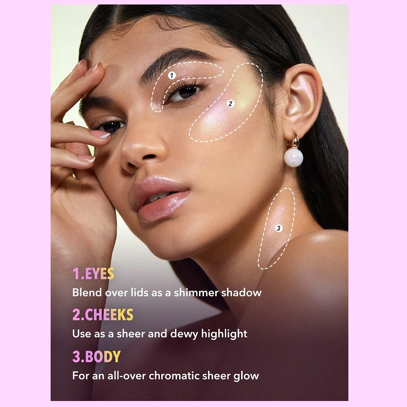 هایلایتر مایع کروم شیگلم جدیدترین و خاص ترین هایلایتر شیگلم است. حالت کروم آن درخششی خیره کننده بر روی پوست ایجاد می نماید که بسته به زاویه ای که نور به پوست شما می رسد، رنگ آن تغییر می کند و حالتی خاص که تاکنون کمتر تجربه کرده اید را مشاهده خواهید نمود. این محصول بر روی حیوانات تست نشده است.