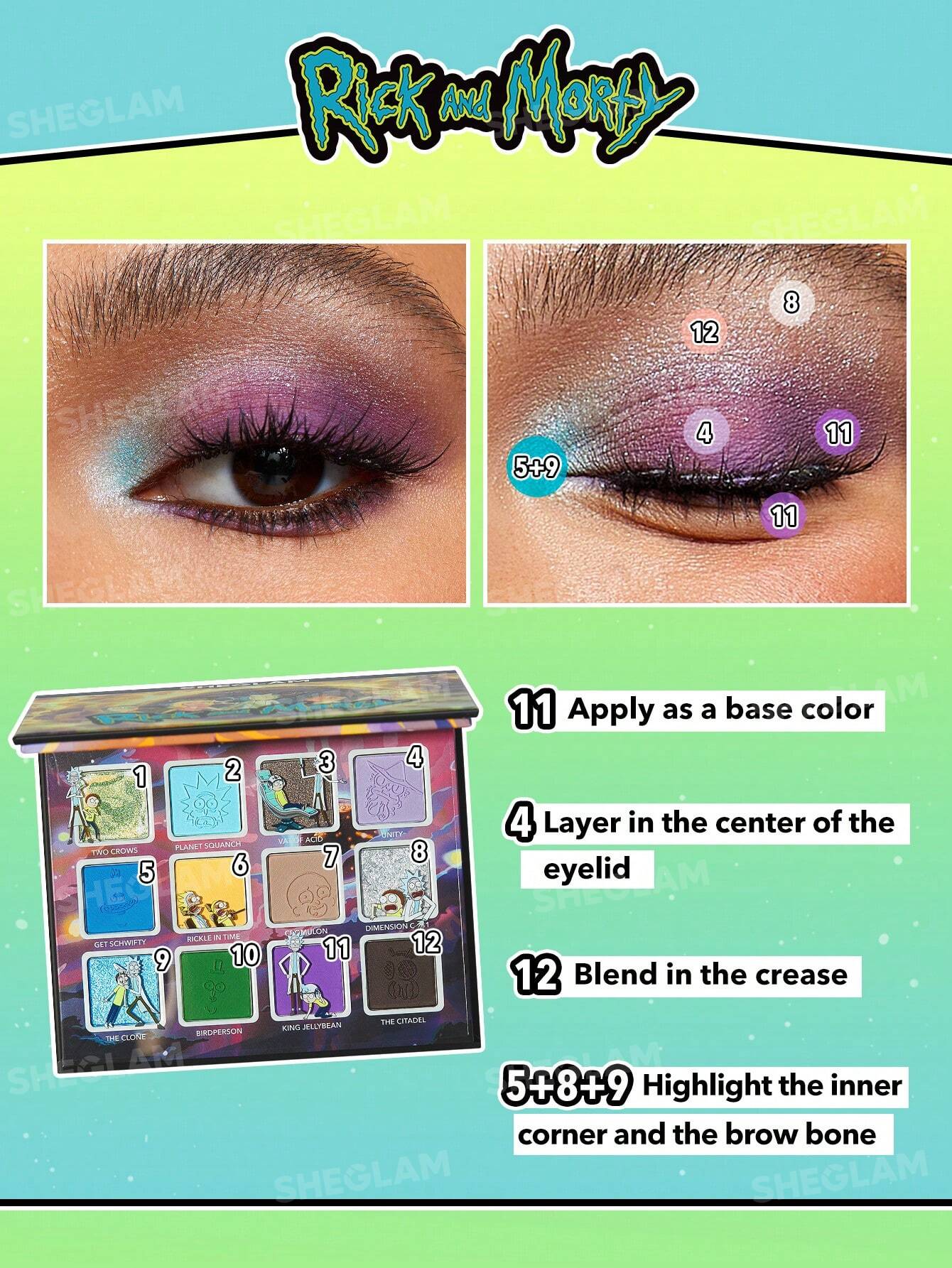 پالت سایه چشم Rick and Morty محصولی از همکاری برند لوازم آرایش شیگلم (SHEGLAM) با انیمیشن محبوب ریک و مورتی (Rick and Morty) است. این پالت، بخشی از یک مجموعه آرایشی بزرگتر با تم ریک و مورتی است که شامل محصولات دیگری مانند رژ لب، رژگونه، پودر فیکس و اسپری فیکس نیز میشود.