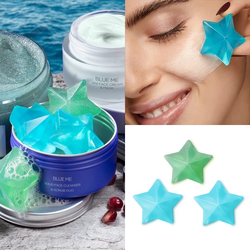 ستاره آبی رنگ غنی شده با روغن زغال اخته بوده و بخوبی پوست را پاک و تمیز می نماید و ستاره سبز رنگ یک اسکراب با کیفیت و حاوی ذرات بامبو طبیعی بوده که به آرامی پوست را لایه برداری نموده و موجب درخشش و شادابی پوست می شود.