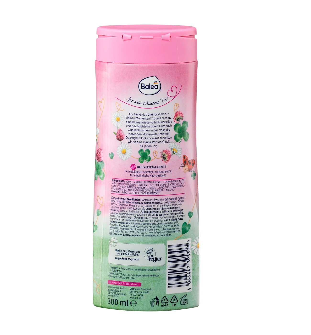 ژل دوش باله آ مدل Happiness با رایحه گل، پوست شما را نرم و ابریشمی میکند و با تجربهای از عطر، نوازش میشود. فرمول ملایم آن از خشک شدن پوست شما جلوگیری میکند و برای پوستهای حساس مناسب است. این فرمول عاری از میکروپلاستیک و پلیمرهای کاملاً مصنوعی محلول در آب است.