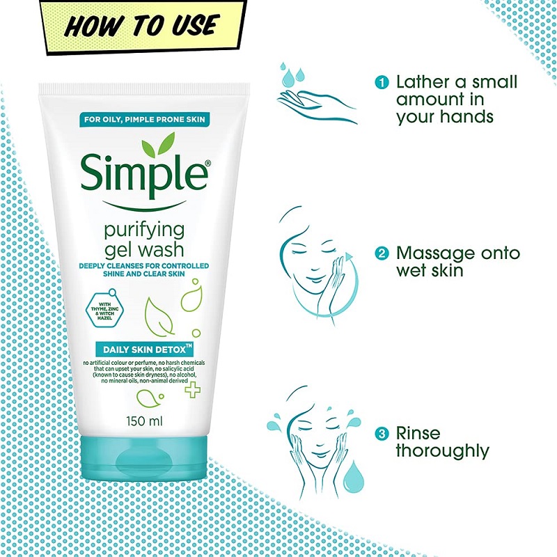 منافذ باز صورت مقدار زیادی آلودگی به خود جذب کرده و در افزایش روند پیری پوست بسیار تاثیر گذار است. این محصول پاک کننده عمقی پوست و منافذ از چربیها، سبوم و انواع آلودگیها میباشد و براقی (شاین) پوست را کنترل می نماید. ژل شستشوی سیمپل، توانایی و قدرت بالایی در تنظیم و کنترل ترشح چربی پوست دارد. همچنین این ژل وگان بوده و بر روی حیوانات نیز تست نشده است و در فرمولاسیون آن از الکل، پارابن، مواد شیمیایی سخت، مواد افزودنی و روغنهای معدنی استفاده نشده است.