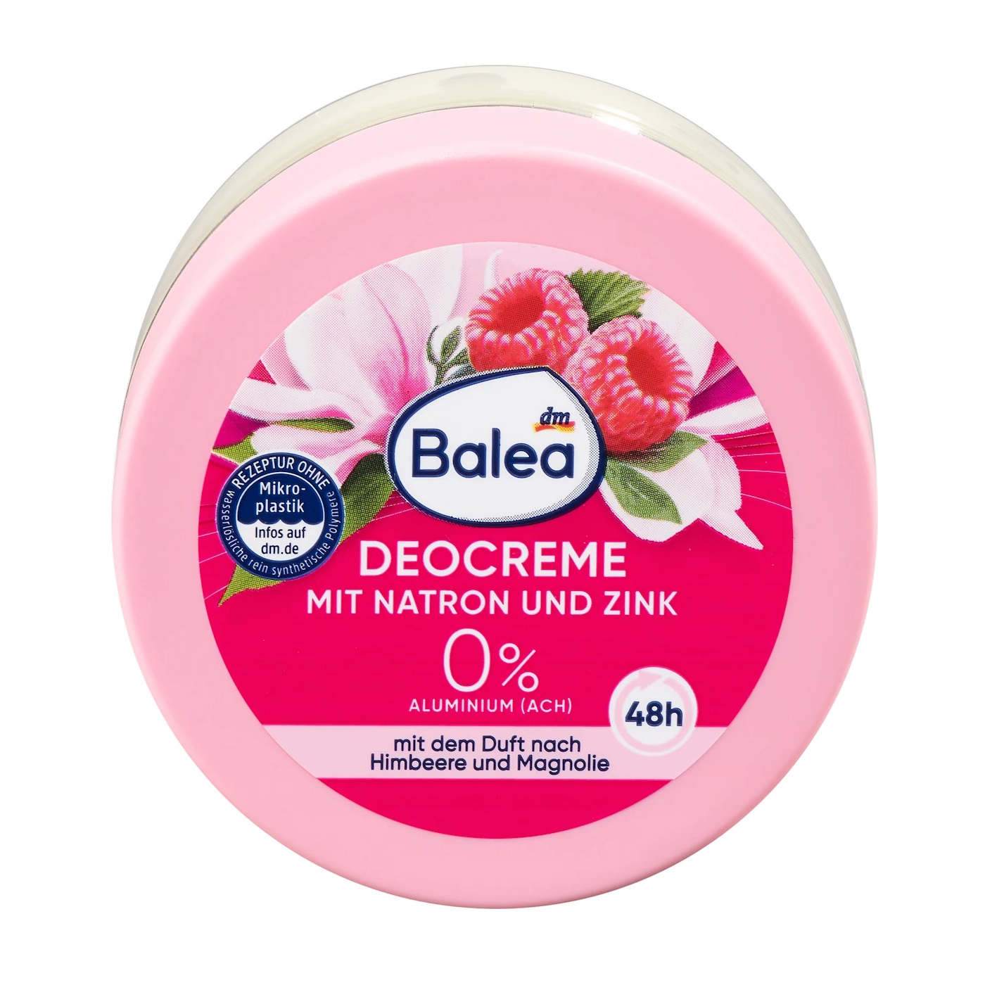 کرم دئودورانت بدون آلومینیوم باله آ یک کرم دئودورانت محصول برند Balea، از شرکت dm-drogerie markt آلمان است که به دلیل فرمولاسیون طبیعی و بدون آلومینیوم، محبوبیت زیادی پیدا کرده است. این محصول با حجم 50 میلیلیتر و رایحه میوهای تمشک و مگنولیا عرضه میشود و برای محافظت 24 تا 48 ساعته در برابر بوی عرق طراحی شده است. در ادامه توضیحات جامعی در مورد این محصول ارائه میشود: