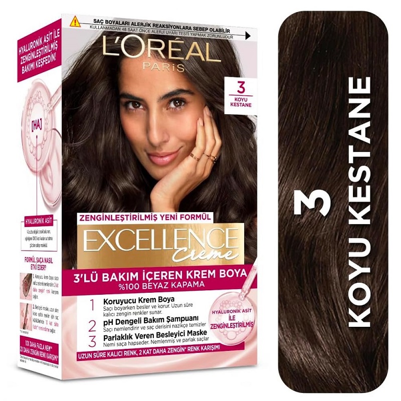 رنگ مو اکسلانس لورال یکی از بهترین و پرفروش ترین رنگ موهای دنیا بوده و به دلیل داشتن تکنولوژی محافظت سه گانه و پرو کراتین های پیشرفته از ساقه های موی شما محافظت نموده، تغذیه کرده و زیبایی موهایتان را چندین برابر خواهد کرد. رنگ موی اکسلانس لورال 5 برابر بیشتر موهایتان را نرم خواهد کرد و بعد از استفاده موهایی براق و خوش رنگ برای شما به ارمغان خواهد آورد. تمامی رنگ های این محصول موهای سفید را پوشش خواهند داد و نگرانی بابت سفید ماندن موهایتان نخواهید داشت. وجود شامپو و کرم مو مخصوص در کیت رنگ مو Excellence باعث می شود که موها به مدت ۸ هفته محافظت شده و کاملا نرم و خوش حالت باقی بمانند. در این کیت رنگ مو از مقدار بسیار کمی آمونیاک استفاده شده که باعث آسیب رساندن به موهای شما نشده و سلامت موهای شما را حفظ می کند.