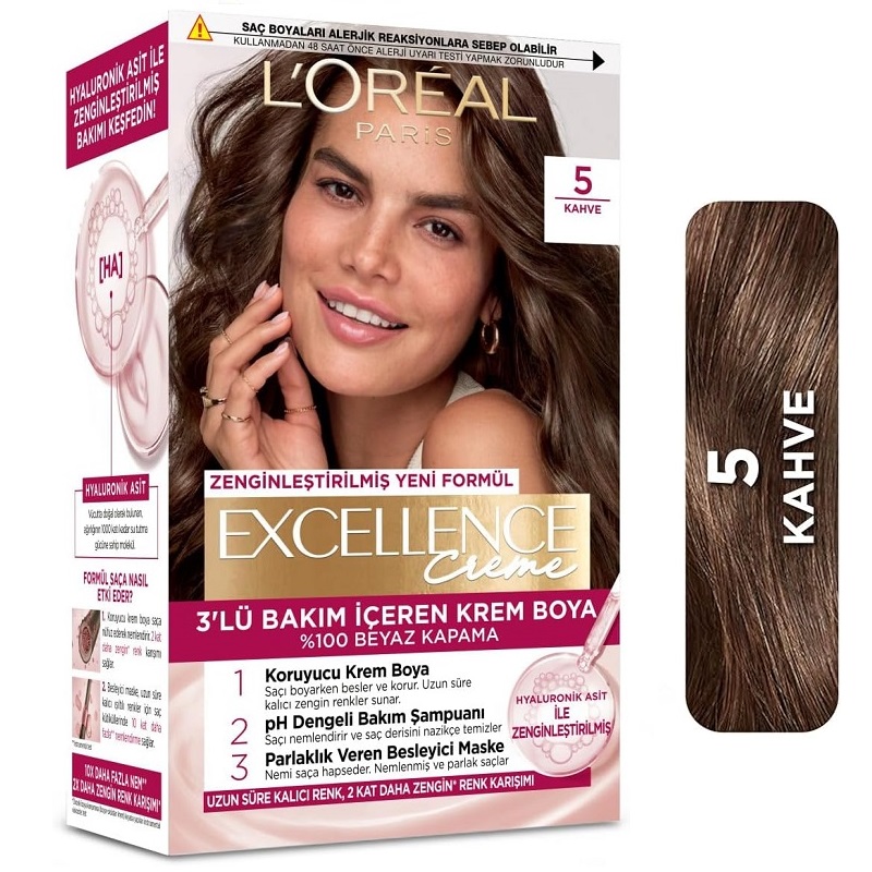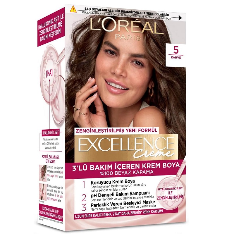 رنگ مو اکسلانس لورال یکی از بهترین و پرفروش ترین رنگ موهای دنیا بوده و به دلیل داشتن تکنولوژی محافظت سه گانه و پرو کراتین های پیشرفته از ساقه های موی شما محافظت نموده، تغذیه کرده و زیبایی موهایتان را چندین برابر خواهد کرد. رنگ موی اکسلانس لورال 5 برابر بیشتر موهایتان را نرم خواهد کرد و بعد از استفاده موهایی براق و خوش رنگ برای شما به ارمغان خواهد آورد. تمامی رنگ های این محصول موهای سفید را پوشش خواهند داد و نگرانی بابت سفید ماندن موهایتان نخواهید داشت. وجود شامپو و کرم مو مخصوص در کیت رنگ مو Excellence باعث می شود که موها به مدت ۸ هفته محافظت شده و کاملا نرم و خوش حالت باقی بمانند. در این کیت رنگ مو از مقدار بسیار کمی آمونیاک استفاده شده که باعث آسیب رساندن به موهای شما نشده و سلامت موهای شما را حفظ می کند.