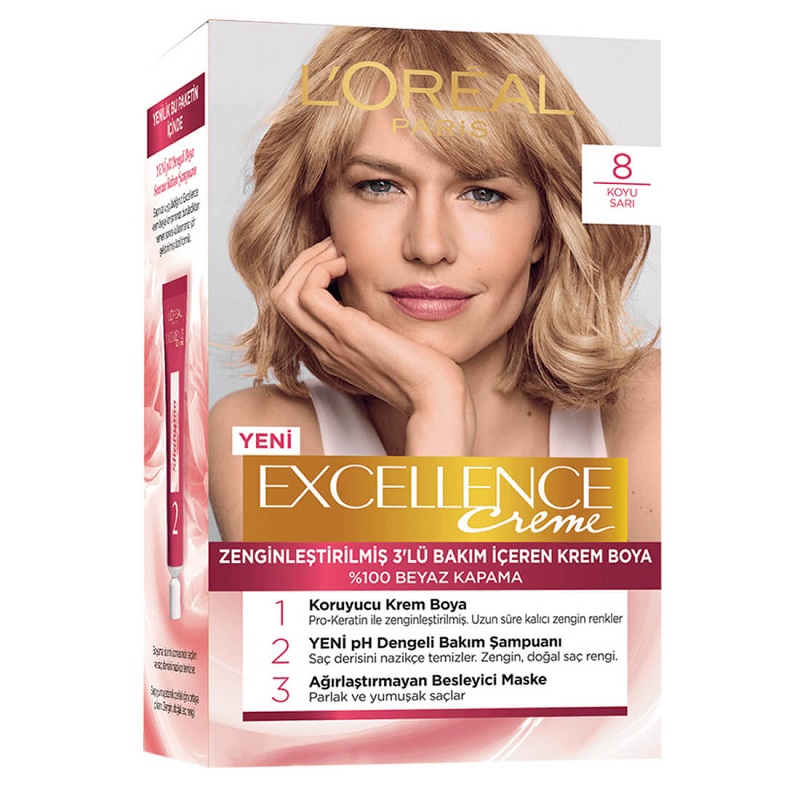 رنگ مو اکسلانس لورال یکی از بهترین و پرفروش ترین رنگ موهای دنیا بوده و به دلیل داشتن تکنولوژی محافظت سه گانه و پرو کراتین های پیشرفته از ساقه های موی شما محافظت نموده، تغذیه کرده و زیبایی موهایتان را چندین برابر خواهد کرد. رنگ موی اکسلانس لورال 5 برابر بیشتر موهایتان را نرم خواهد کرد و بعد از استفاده موهایی براق و خوش رنگ برای شما به ارمغان خواهد آورد. تمامی رنگ های این محصول موهای سفید را پوشش خواهند داد و نگرانی بابت سفید ماندن موهایتان نخواهید داشت. وجود شامپو و کرم مو مخصوص در کیت رنگ مو Excellence باعث می شود که موها به مدت ۸ هفته محافظت شده و کاملا نرم و خوش حالت باقی بمانند. در این کیت رنگ مو از مقدار بسیار کمی آمونیاک استفاده شده که باعث آسیب رساندن به موهای شما نشده و سلامت موهای شما را حفظ می کند.