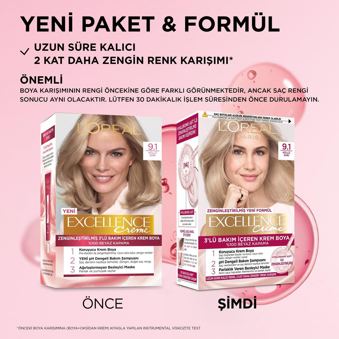 رنگ مو اکسلانس لورال یکی از بهترین و پرفروش ترین رنگ موهای دنیا بوده و به دلیل داشتن تکنولوژی محافظت سه گانه و پرو کراتین های پیشرفته از ساقه های موی شما محافظت نموده، تغذیه کرده و زیبایی موهایتان را چندین برابر خواهد کرد. رنگ موی اکسلانس لورال 5 برابر بیشتر موهایتان را نرم خواهد کرد و بعد از استفاده موهایی براق و خوش رنگ برای شما به ارمغان خواهد آورد. تمامی رنگ های این محصول موهای سفید را پوشش خواهند داد و نگرانی بابت سفید ماندن موهایتان نخواهید داشت. وجود شامپو و کرم مو مخصوص در کیت رنگ مو Excellence باعث می شود که موها به مدت ۸ هفته محافظت شده و کاملا نرم و خوش حالت باقی بمانند. در این کیت رنگ مو از مقدار بسیار کمی آمونیاک استفاده شده که باعث آسیب رساندن به موهای شما نشده و سلامت موهای شما را حفظ می کند.